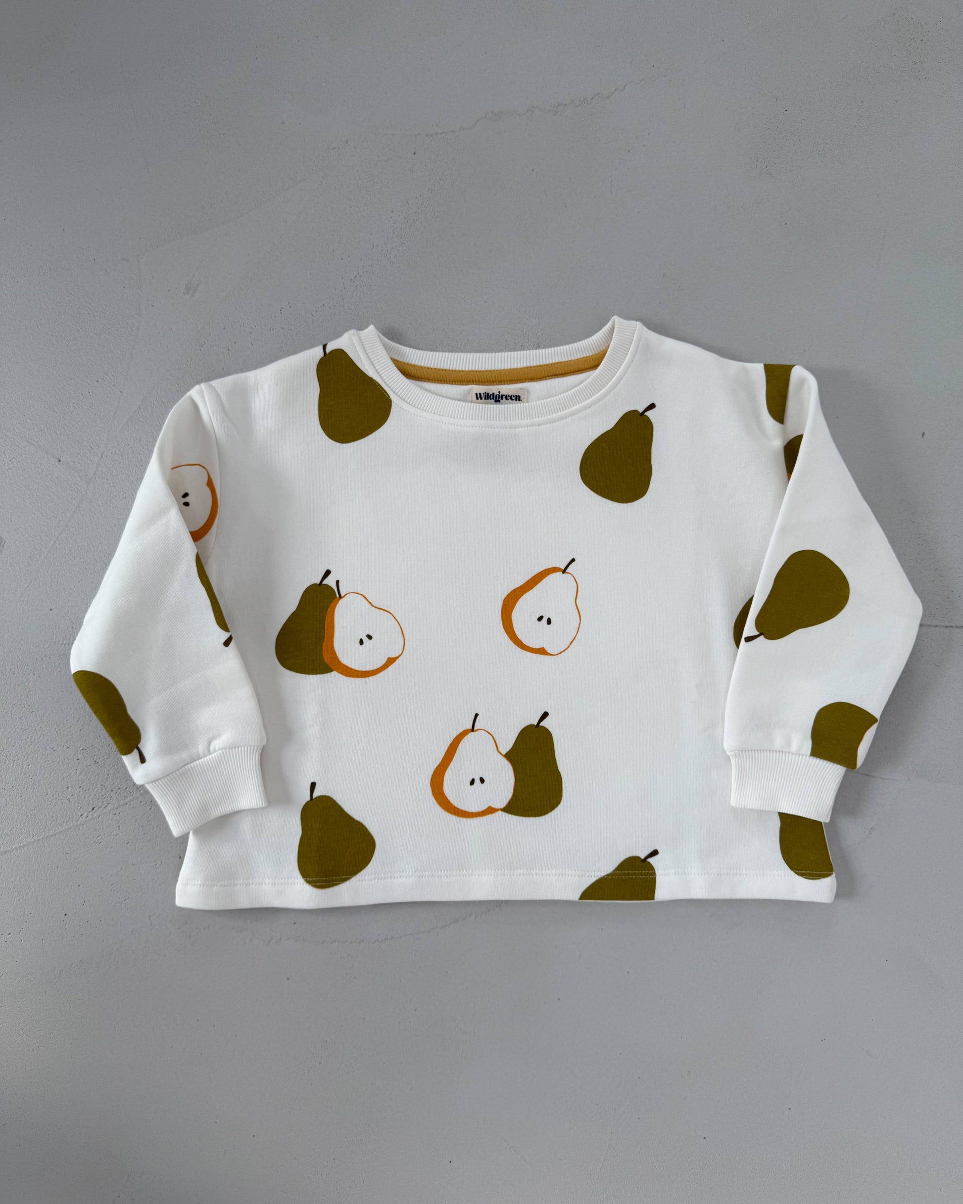 Part of our Orchard Collection, our Wildgreen Autumn Pear Sweater combines playful design with premium quality. Crafted from 340GSM undyed organic cotton jersey with a brushed back for softness and durability. The relaxed, dropped-shoulder shape and unisex print make it a versatile piece for any child’s wardrobe. Pairs perfectly with our ribbed leggings in earthy tones for effortless capsule co-ords.